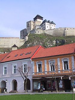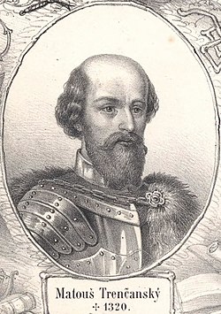 Zwischen 1302 und 1321 war die Burg Sitz des ungarischen Oligarchen Matthäus Csák, der für einige Jahre von hier aus den Großteil der heutigen Slowakei politisch und militärisch beherrschte und ihr faktischer Herrscher war. Nach Csáks Tod wurden die Stadt und die Burg vom königlichen Heer besetzt. Trotz der „feindlichen“ Lage wurden der Stadt im späten Mittelalter mehrere Rechte zugesprochen: 1324 wurde die Bürger vom Bezahlen der Maut im gesamten Königreich ausgenommen. Im 1335 geschlossenen Vertrag von Trentschin zwischen Karl von Anjou, König von Ungarn, Johann von Luxemburg, König von Böhmen, sowie Kasimir dem Großen, König von Polen, verzichtete Polen „für alle Zeiten“ auf Schlesien zugunsten des Königreichs Böhmen. 1370 kam das Recht zur Veranstaltung eines Jahrmarkts, 1380 erhielten die Bürger das Recht, Bier zu brauen.[7] Aber erst 1412 wurde Trentschin vom König Sigismund von Luxemburg zur freien königlichen Stadt erklärt. Zu Ende des 15. Jahrhunderts gab es in der Stadt 14 Zünfte, daneben auch Händler.[8]