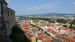Die Festung Marienburg liegt an einem Berg, der sich über der Stadt erhebt. In ihr stehen im Zentrum die Pfarrkirche, dann der nahe liegende Karner des Hl. Michael, die Pfarre, die ehemalige Schule oder das Haus des Regenschori. Auf der Südseite schließt die Marienburg an die einzige erhaltene Stadtmauer der Stadt an. Mit dem Bau der Stadtbefestigung wurde nach dem Jahr 1412 begonnen. Später wurde unterhalb der Marienburg eine über 20 Meter hohe durch Stützpfeiler gesicherte Mauer erbaut. Diese Westmauer ist sehr gut vom Stadtzentrum aus sichtbar.