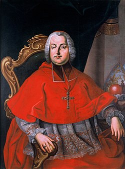 April 1747 Kardinal, im Jahre 1751 Protektor Deutschlands. Da er ständig in Olmütz weilte, ließ er seine Verwandten nach Mähren kommen und verlieh ihnen dort bischöfliche Lehensgüter (Ober-Moschtenitz). Das