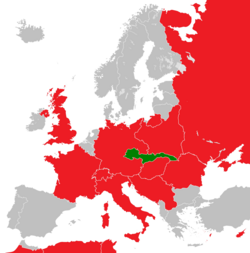 | (red) to these countries Czechoslovakia (green) was broken off diplomatic relations, or they were terminated by the other countries | Eigenes Werk | Tschechoslowakei | Datei:Diplomatic relations between Czechoslovakia and Europe 1938-1939.png | |