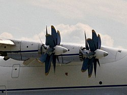 | Progress D-27 propfan engines of an Antonov An-70. | Diese Datei wurde von diesem Werk abgeleitet: An-70 takeoff.jpg : | An-70_takeoff.jpg : Der ursprünglich hochladende Benutzer war Marianivka in der Wikipedia auf Englisch derivative work: Threecharlie | Datei:Progress D-27 propfan (Antonov An-70).jpg | |