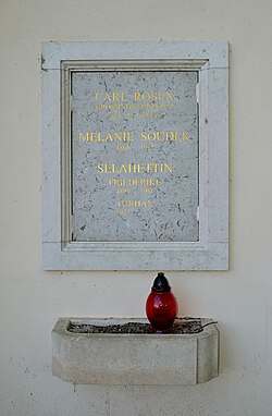 | Urnennische Turhan Bey im Urnenhain der Feuerhalle in Simmering. Todesdatum noch nicht eingraviert. | Eigenes Werk | Herzi Pinki | Datei:Gravestone Turhan Bey at Urnenhain Simmering.jpg | |