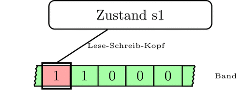 Damit hat die Turingmaschine einen Schritt ihres Arbeitszyklus durchlaufen und steht für einen weiteren bereit.
