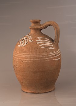 | Ceramic jugs, Sammlung Fritz GomboczKrüge aus Keramik, Steingut, Collection Fritz GomboczKeramiksammlung , Bad Radkersburg, Bäuerliche Irdenware-Töpferware ohne Glasur mit Schlicker, Malhorn, Verzierungen Burgenland, Plutzer Stoob, Jabing um 1900, für Wasser auch Most, kühlt durch Verdunstung Keramische Volkskultur in Laafeld bei Bad Radkersburg Fotoaktion vom 7. bis 10. Juli 2014 Die Herstellung oder Freigabe dieser Datei wurde durch Spenden an Wikimedia Österreich unterstützt. Weitere Dateien, die durch Unterstützung von Wikimedia Österreich hier veröffentlicht wurden, finden sich in der Kategorie Supported by Wikimedia Österreich . | Eigenes Werk | Hubertl | Datei:20140708 Radkersburg - Ceramic jugs - H4017.jpg | |