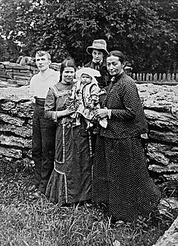 | Julinana Krawtschenko mit Familie 1920. Mit Hut: die jüngste Tochter Nusja. Hinten: Schwager Jaroslaw Sekela. Auf dem Arm der Kinderfrau: Enkel Leo. | http://photo-lviv.in.ua/trahichna-lyubov-ulyany-kravchenko-do-ivana-franka/ | Autor/-in unbekannt Unknown author | Datei:Uliana Kravchenko 1920.jpg | |