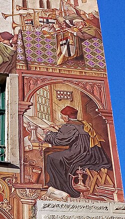 | Konstanz Haus zum Hohen Hafen, Ulrich von Richental schreibt die Konzilschronik, Fassadenmalerei, Karl von Häberlin, 1905 | Eigenes Werk | Joachim Specht | Datei:Konstanz Haus zum Hohen Hafen Richental.jpg | |