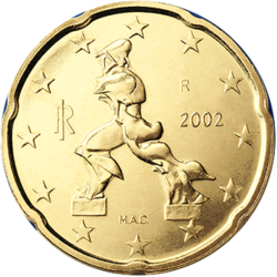 20-Euro-Cent-Münze Italien | Europäische Zentralbank | Banca d’Italia | Datei:20 cent coin It serie 1.png |