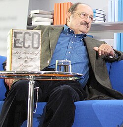 Umberto Eco (* 5. Januar 1932 in Alessandria, Piemont; † 19. Februar 2016[1] in Mailand, Lombardei) war ein italienischer Schriftsteller, Kolumnist, Philosoph, Medienwissenschaftler und einer der bekanntesten Semiotiker sowie Philologe der zweiten Hälfte des 20. Jahrhunderts. Durch seine Romane, allen voran Der Name der Rose (im Original erschienen 1980), wurde er weltberühmt. Daneben verfasste er wissenschaftliche Werke, Kinderbücher, regelmäßige Zeitungsbeiträge und Sachbücher.