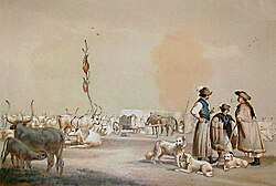 Auch Großgrundbesitzer wie die Batthyány-Familie in Kanizsa nutzten die Konjunktur des Rinderhandels. Ebenso vermehrten Herrscher wie der Palatin Tamás Nádasdy mit Ankauf, Mästung und Verkauf ihr Vermögen. Der Fürst Gábor Bethlen gilt in Siebenbürgen als der erste Rinderhändler im großen Stil.[4] Der Dichter und Feldherr Miklós Zrínyi finanzierte mit den Einnahmen seine Privatarmee und den Kampf gegen die Osmanen. Er überwachte die Handelsrouten durch seine großen Besitze in Kroatien und betrieb trotz des Verbots durch den Wiener Hof eigene Rindermärkte.[10] Er unterstützte auch andere Handelsfamilien beim Widerstand gegen die Habsburger.