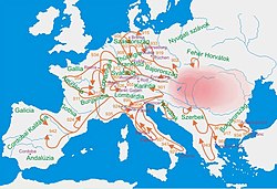 Kalandozó magyar hadjáratokHungarian campaigns | Hungarian Wikipedia: w:hu:Image:Kalandozasok.jpg | hu:User:Csanády | Datei:Kalandozasok.jpg | |