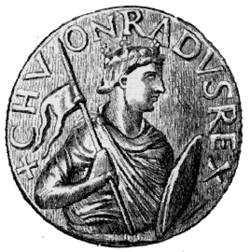Siegel Konrad I., Abbildung aus Dr. Paul Knötel, Bildatlas der Deutschen Geschichte, Bielefeld und Leipzig, 1895 | Übertragen aus de.wikipedia nach Commons. | Der ursprünglich hochladende Benutzer war Sebastianwallroth in der Wikipedia auf Deutsch | Datei:Konrad I.png | |