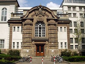 - Campus Universitätsstraße: Das ehemalige Jesuitengymnasium und das angrenzende, seit 1766 als Universität genutzte Gebäude bei der Jesuitenkirche werden heute von der Katholisch-Theologischen Fakultät genutzt. Gegenüber wurde 1997 auf dem Gelände der ehemaligen Fenner-Kaserne die Sozial- und Wirtschaftswissenschaftliche Fakultät eröffnet.[31] Seit Januar 2023 werden unmittelbar daneben im südwestlichen Teil des Hotels Grauer Bär, das verkleinert weiter betrieben wird, umgebaute Zimmer u. a. für das Institut für Medien, Kommunikation und Gesellschaft sowie für das Institut für Psychologie genutzt.[32]