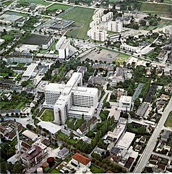 | Das Landesklinikum St. Pölten, In der Mitte das Haus B, Rechts das Haus A. links hinter dem Glasdach ist die Denkmalgeschützte Kapelle zu erkennen. | originally posted to Flickr as Hospital St. Pölten | Emre Demirbilek | Datei:Hospital St. Pölten.jpg | |