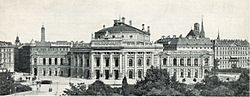 | Das Burgtheater in Wien | Julius Laurencic (Hrsg.): Unsere Monarchie - Die österreichischen Kronländer zur Zeit des fünfzigjährigen Regierungs-Jubiläums seiner k.u.k. apostol. Majestät Franz Joseph I. , Georg Szelinski k.k. Universitäts-Buchhandlung, Wien 1898 | August Stauda | Datei:Burgtheater um 1898.jpg | |
