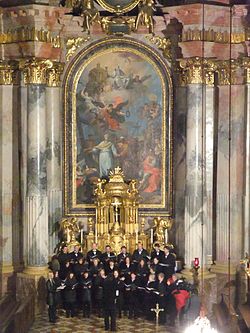 | Der Gemischter Chor Jakob Petelin Gallus singt vor dem Hauptaltar im Klagenfurter Dom in Klagenfurt / Österreich / Europäische Union . Dieses Bild zeigt das in Österreich unter der Nummer 62074 denkmalgeschützte Objekt. ( Commons , de , Wikidata ) | Eigenes Werk | Joadl (all honors to MK) | Datei:Gemischter Chor Jakob Petelin Gallus im Klagenfurter Dom.jpg | |