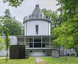 | Alte Feuerhalle, Urnenhain, Linz Urfahr | Eigenes Werk | Thomas Ledl | Datei:Linz-Urfahr Urnenhain - Alte Feuerhalle SW 04 Galerie.jpg | |
