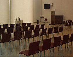 | Alte Feuerhalle, Urnenhain, Linz Urfahr | Eigenes Werk | Thomas Ledl | Datei:Linz-Urfahr Urnenhain - Alte Feuerhalle innen Zeremoniensaal.jpg | |