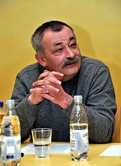 | Das Bild zeigt den deutsch-rumänischen Schriftsteller Uwe Erwin Engelmann bei einer Lesung des Dichterstammtisches Siegen in den Räumen der Siegener Waldorfschule am 20. März 2009. | Eigenes Werk | Kai Schubert | Datei:Uwe-erwin-engelmann.jpg |
