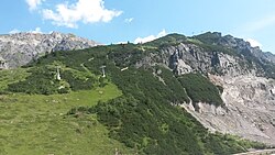 | Arlenmaehderbahn in Klösterle, Vorarlberg , Österreich . Im Vordergrund die Ulmerhütte. | Eigenes Werk | Asurnipal | Datei:Rautz-Arlenmaehderbahn-Ulmerhuette-01ASD.jpg | |