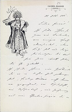 | Letter written by Sacher-Masoch on his stationary. Wellcome Library MS. 6909 - L0072452. | Wellcome Library | Leopold von Sacher-Masoch | Datei:Leopold von Sacher-Masoch letter.jpg |