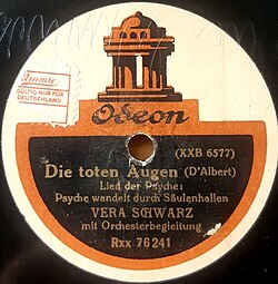 | Schallplatte von Vera Schwarz | Eigenes Werk | Zylberglajs | Datei:Schwarz, Vera.jpg | |