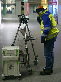 | Vermessungstechniker mit Laserscanner. | Eigenes Werk | Mattes | Datei:Vermessungstechniker mit Gerät.JPG |