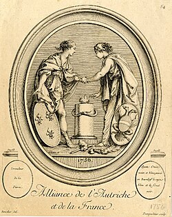 | Suite d'estampes Gravées par Madame la Marquise de Pompadour d'après les Pierres gravées de Guay Graveur du Roy | http://www.britishmuseum.org/research/collection_online/collection_object_details.aspx?objectId=3406048&partId=1&searchText=1756+treaty&page=1 | British Museum Collection, Object reference number: PPA336783. Museum number: 1917,1208.3939. | Datei:Alliance de l'Autriche et de la France.jpg | |