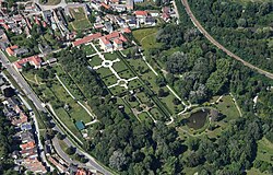 - ↑ Barockanlage in Grundzügen erhalten, im Zweiten Weltkrieg schwer beschädigt und danach als Park saniert; angrenzend Belvederegarten (Nr. 47)