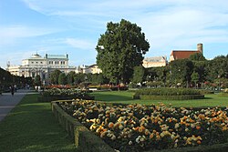 - ↑ Volksgarten französischer Garten, 1860 erweitert; Burggarten urspr. französisch, 1863 erweitert und in englischen Garten umgestaltet; Helden- und Maria-Theresien-Platz französisch, ursp. als Teil des Kaiserforums konzipiert, Heldenplatz dann Paradeplatz und nur rudimentär gestaltet