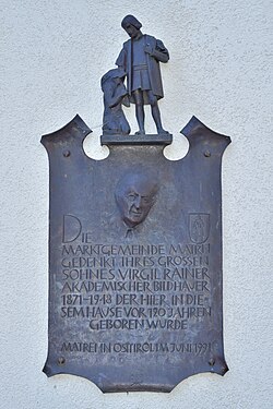 | Gedenktafel für den Bildhauer Virgil Rainer, der am Bauernhof Messner geboren wurde. | Eigenes Werk | Haeferl | Datei:Matrei - Bauernhof Messner - Gedenktafel für Virgil Rainer.jpg | |