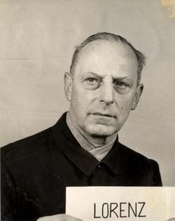 | Werner Lorenz (* 2. Oktober 1891 in Grünhof; † 13. März 1974 in Hamburg) war Leiter der Volksdeutschen Mittelstelle, SS-Obergruppenführer, General der Waffen-SS und Polizei und verurteilter Kriegsverbrecher. | http://collections.yadvashem.org/photosarchive/en-us/32106.html (Yad Vashem Photo Archive) | Nurnberg, Germany. APO 696-A, US Army. Public Relations Photo Section Office Chief Counsel for War Crimes | Datei:Werner Lorenz.jpg |
