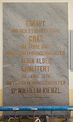 | Gedenktafel im Gebäude der Volksschule Geidorf in GrazBeschreibt die Erbauung und Erweiterung der Schule | Eigenes Werk | Sewy9 | Datei:Gedenktafel Volksschule Geidorf Graz.jpg | |