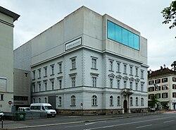 | Vorarlberger Landesmuseum, Bregenz Fassade zur Rathausstraße (links) und zum Kornmarkt (rechts), 2009 | Selbst fotografiert | Photo: Andreas Praefcke | Datei:Vorarlberger Landesmuseum 2009.jpg | |