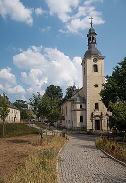 | Diese Datei zeigt das denkmalgeschützte Objekt in Tschechien mit der Nummer | Eigenes Werk | Michielverbeek | Datei:Vratislavice nad Nisou, kostel Nejsvětější trojice Dm366435-4502 IMG 7183 2018-08-08 15.10.jpg | |
