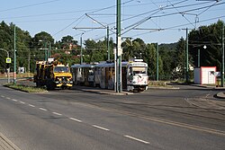 | Regelspuriger Straßenbahnzug in Vratislavice nad Nisou | Eigenes Werk | Roehrensee | Datei:Vratislavice nad Nisou IMG 9061.jpg |