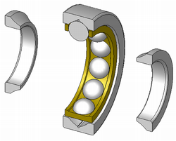 | Assembly of a rigid ball-bearing. Image rendered with computer graphics using SolidWorks . (author: ruizo ) | Übertragen aus fr.wikipedia nach Commons. | Ruizo in der Wikipedia auf Französisch | Datei:Ball bearing step 2.jpg | |