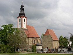 | Spätgotischer Wehrkirchenbezirk in Würflach. Links die Pfarrkirche St. Anna, daneben die Kapelle St. Sebastian, davor ein noch erhaltener Teil der Wehrmauer | Eigenes Werk | Wolfgang Glock | Datei:Wuerflach Wehrkirchen.JPG | |