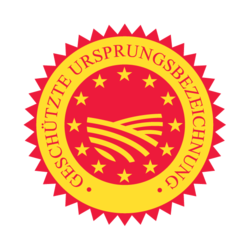 | Gemeinschaftszeichen der Europäischen Union für ‚Geschützte Ursprungsbezeichnung‘ (g.U.; Herkunftsbezeichnung | https://ec.europa.eu/info/food-farming-fisheries/food-safety-and-quality/certification/quality-labels/quality-schemes-explained#logos | Commission of the European Communities | Datei:Protected-designation-origin-logo-de.png |