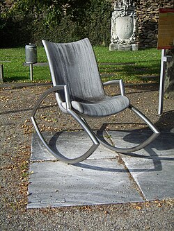 Kunst am Bau , Objekt: Sessel beim Museum, Künstler Michael Öllinger, 1996, Material: Wachauer Marmor und Edelstahl , im Vorhof des Höbarthmuseums , nicht nur zum anschauen, kann auch benutzt werden. | Eigenes Werk | Anton-kurt | Datei:HöbarthmuseumHorn.Sessel.Ah.JPG |