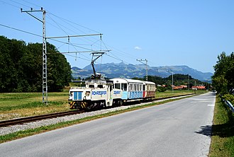 Die Wachtlbahn ist eine elektrisch betriebene Schmalspurbahn zwischen Kiefersfelden in Deutschland und Wachtl in der Gemeinde Thiersee in Österreich, die Spurweite beträgt 900 Millimeter. Sie wurde um 1880 in Betrieb genommen und beförderte bis 1991 ausschließlich Güter. Wichtigstes Transportgut war Kalkstein, dieser wurde in Thiersee in Tirol abgebaut und im Werk der Heidelberger Zement in Kiefersfelden in Bayern zu Zement weiterverarbeitet. Ab 1991 wurde auf der Wachtlbahn touristisch geprägter Personenverkehr angeboten. Dieser wurde von der Museums-Eisenbahn-Gemeinschaft Wachtl e. V. durchgeführt und als Wachtl-Express beziehungsweise Kieferer Grenz-Bahn (KGB) vermarktet. Der Gleiskörper der Wachtlbahn gehört der Rohrdorfer Unternehmensgruppe, seit diese 2003 das Werksgelände in Kiefersfelden und den Steinbruch Wachtl erwarb.[1] 2017 wurde der Betrieb wegen Oberbaumängeln eingestellt, eine Wiederaufnahme war für 2021 geplant,[2] ist aber auch 2025 nicht absehbar.