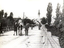 | Die Brücke über die Traisen zwischen Wagram und St. Pölten | Wagram, vom Mühlendorf zu bevorzugten Wohnstadtteil - Herausgegeben vom Magistrat der Stadt St. Pölten | Unbekannt | Datei:Traisenbrücke Wienerstraße vor 1907.jpg | |