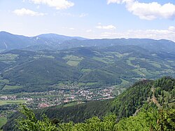 | Blick auf das Schwarzatal (hier Payerbach), Österreich von der Schöberlwarte aus | Selbst fotografiert ( Originaltext: selbst fotografiert ) | ZL | Datei:Blickschöberl.jpg | |