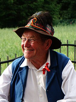Der polnische Bischof und Schriftsteller Ignacy Krasicki (1735–1801) benutzte den Begriff Głuchoniemcy für die bereits assimilierten Walddeutschen in einem Kommentar des Wappenbuchs von Kasper Niesiec und etablierte damit den Begriff in der polnischsprachigen Literatur.[40] Wincenty Pol beschrieb im Jahr 1869, dass die Kleidung der Walddeutschen der der ungarischen und siebenbürgischen Deutschen ähnlich war. Sie seien hauptsächlich in der Landwirtschaft und der Weberei tätig gewesen.[41][42] In der deutschsprachigen Literatur wurden Walddeutsche 1907 von Raimund Friedrich Kaindl popularisiert.[43] Im Jahr 1921 wurden Teile deutschsprachiger Schöffenbücher aus den Sprachinseln um Łańcut und Krosno veröffentlicht.[43] Im Jahr 1928 erschien ein Artikel von Walter Kuhn über deutsche Siedler um Wielopole Skrzyńskie.[28] Später folgten Forschungen von Franz A. Doubek (1928,[10] 1931,[44] 1932, 1933), Heinrich F. Schmid (1931[44]), Kurt Lück (1934[45]), Ernst Schwarz (1937, 1957, 1960) und Giselle Hildebrandt (1943). Einige Initiativen zur Germanisierung während der deutschen Besetzung Polens 1939–1945 stützten sich auf diese Forschung, so die „Hatschower Aktion“ um Krosno und die Aktion „Goralenvolk“ in Polens Hochland Podhale, nach denen die Bewohner von Haczów und die Goralen als deutscher Herkunft zu betrachten und zu germanisieren seien, was aber an Widerständen der Betroffenen scheiterte. In der Literatur der Volksrepublik Polen ließ nach dem Zweiten Weltkrieg die Forschung hierzu nach, genannt werden sollen Adam Fastnachts Veröffentlichungen (1962, 1990, 1991, 1998, 2002) und ein ausführliches Werk von Franciszek Trojnar (1988), in dem er den in der NS-Zeit (1943) erschienenen „Hildebrandt-Artikel“ scharf angriff.[46] Die neueste Forschung des Schöffenbuchs von Markowa (im Besitz des Zentralarchivs der Ukraine) wurde u. a. vom polnischen Germanisten Grzegorz Chromik betrieben.