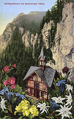| Anischtskarte von 1931: Schüsserlbrunnkapelle mit Hochlantsch im Hintergrund | http://www.ak-ansichtskarten.de/ak/93-Alte-Ansichtskarte/22806-Stadt-Schuesserlbrunn/4397827-AK-Schuesserlbrunn-Wallfahrtskapelle-mit-Hochlantsch | Autor/-in unbekannt Unknown author | Datei:Schüsserlbrunn 1931 4397827.jpg | |