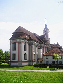 | The monastery of Birnau on Lake Constance. | Eigenes Werk | Holger Uwe Schmitt | Datei:1971 wurde die barocke Klosterkirche Birnau zur Basilika erhoben. 01.jpg | |