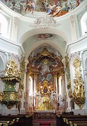 Nun schritt der Bau rasch voran. 1743-1745 wurden der Hochaltar, die Oratorien und die Kanzel nach Entwürfen von Balthasar Ferdinand Moll, dem Hofbildhauer Maria Theresias, vom Wiener Bildhauer Johann Joseph Resler errichtet. Zur gleichen Zeit führte Josef Ignaz Mildorfer das Kuppelfresko mit der Himmelfahrt Mariens aus, eines seiner bedeutendsten Werke.