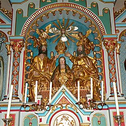 | Wallfahrtskirche Maria Laab in der Katastralgemeinde Naarn in der Marktgemeinde Naarn im Machlande im Bezirk Perg in Oberösterreich. Inneres. Hochaltar | Eigenes Werk | TREM-RRRR | Datei:Kirche-in-Laab-1050767-Naarn-in-Oberoesterreich.JPG | |