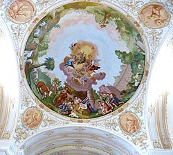 | Bad Leonfelden ( Oberösterreich ). Kath. Filialkirche Maria Schutz am Bründl: Fresko ( 1792 ) von Andreas Kitzberger - Anbetung der Hirten, | Eigenes Werk | Wolfgang Sauber | Datei:Bad Leonfelden Maria Bründl - Fresco 3 Anbetung der Hirten..jpg | |