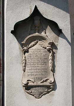 | Eine Grabplatte aus dem Jahre 1782 an der Pfarrkirche Maria Trost im Elend in Pottenstein, Niederösterreich. | Eigenes Werk | Herzi Pinki | Datei:Grave stone, Pottenstein, Lower Austria.jpg | |
