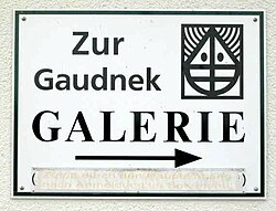 | Wegweiser zur Gaudnek -Galerie, die sich im Treppenhaus der Volksschule Altomünster befindet.Unleserlicher Hinweis-Text: „Zutritt durch den Haupteingang nach Anmeldung im Sekretariat“ | own work | Wikida | Datei:Zur-gaudnek-galerie.jpg |